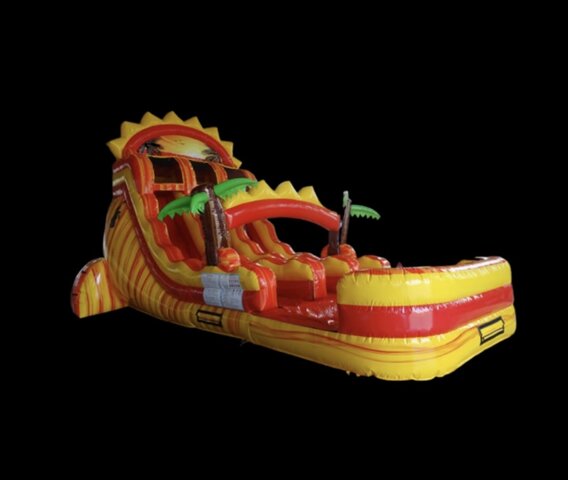 DescriptionThe 18ft Summer Sunrise Dual Lane Slide will pop at your next party. These vibrant colors will have you guess in a good mood.